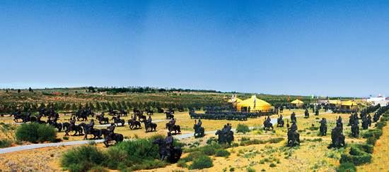 3.铁马金帐群雕是历史上第一次真实再现成吉思汗率军出征实景的大型军阵;