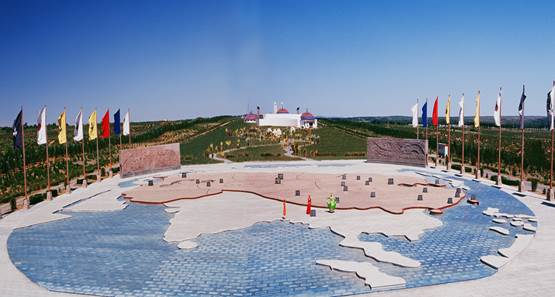 成吉思汗及其子孙创建的广袤疆域,横跨亚欧,地括3200万平方公里,打通了东西方文明通道,也促进了世界文明进程和历史文化的发展,亚欧版图是中外历史上最大的以版图形式重现蒙元帝国疆域的景点。