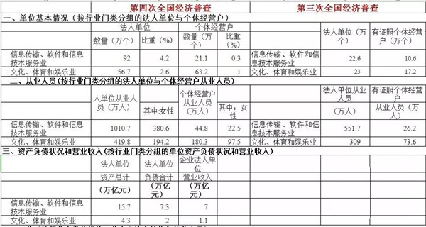以下是第四次全国经济普查和第三次全国经济普查文化产业相关数据: