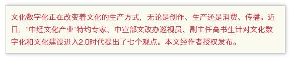 文化数字化正在改变文化生产方式。文化建设2.0时代,文化创作、生产、传播和消费都会发生很大变化甚至是根本性变化。