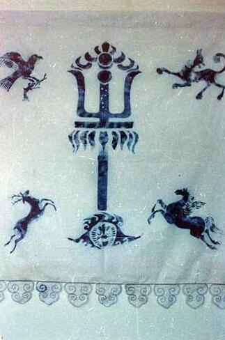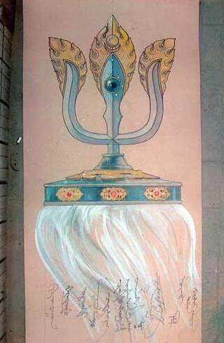 马冀教授指出,就是在这次大会上,成吉思汗树起了一面引人注目的白色大旗,旗上还有9条飘带,史称“九斿白纛”或者“九足白纛”,蒙古人俗称“查干苏力德”。蒙古人以白色为吉祥的颜色,“足”和“斿”都是指旗上的飘带、穗子。9又是蒙古人认为吉祥的数字,所以用9条飘带。蒙古人相信这个旗帜代表着军队的守护神,可以引导军队从胜利走向胜利,所以蒙古军队打仗前要祭旗出征,胜利后也要用牲畜摆供祭祀。据传,成吉思汗的仪卫存有纯白大旗备用,国王用九尾白旗,中间画着黑色月亮。后来蒙古族人民供奉的苏勒德,可能就是从这面大旗演变而来的,它象征着胜利、幸福、吉祥,是民族的守护神。