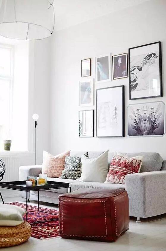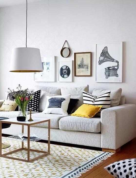 沙发区是客厅的核心区域,人们往往只注重沙发和茶几的搭配,往往忽略了沙发背后的墙面装饰。其实沙发后的墙面装饰应该好好利用起来,装饰小画来往往能为客厅带来画龙点睛的效果。