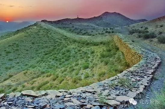 它迤逦于阴山南麓的群峰丘陵之中,古代是兵家必争之地。历经2000多年的风雨侵蚀,如今,这条赵国长城只残存下局部遗迹,其中,保留比较好的一段在包头至石拐公路10公里处。