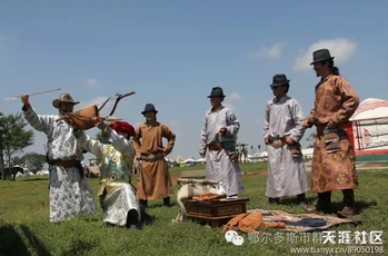 鄂尔多斯婚礼以男方娶亲为主线,有哈达订亲、佩弓娶亲、拦门迎婿、献羊祝酒、求名问庚、卸羊脖子、分发出嫁、母亲祝福、抢帽子、圣火洗礼、跪拜公婆、新娘敬茶、大小回门等一系列特定的仪式程序和活动内容,浓缩了蒙古族娶亲过程中的精华内容,寓情于歌舞,场面热烈欢快、诙谐喜庆,内容健康,品格高雅,突出表现了蒙古族人民粗犷剽悍、豪爽热情、讲究礼仪的民族性格。