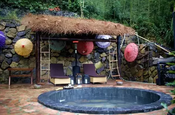 坐浴在热汤之中,以红酒、香槟配小食,或是沏一壶莫干山特色高山茶,再与三五好友慢慢畅聊。