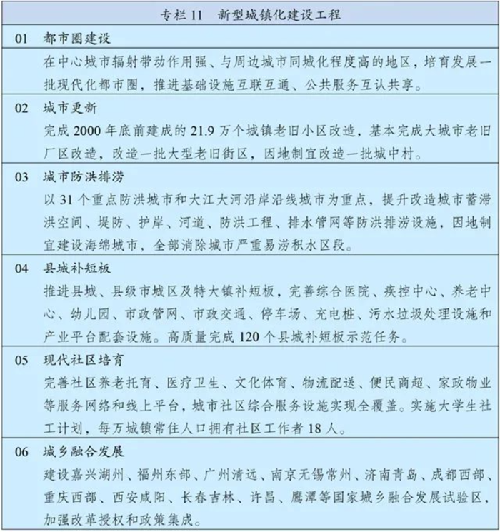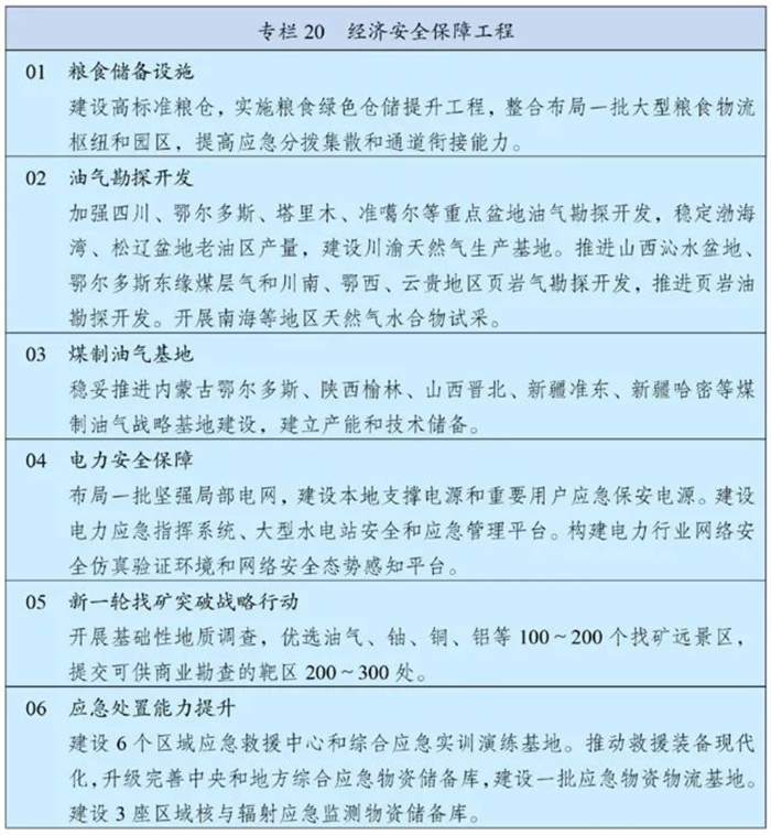 这两次重要会议中均提到了“十四五”规划《纲要》102项重大工程项目,均要求在中央预算投资、社会投资上加以保障和引导,以扎实推进项目实施。