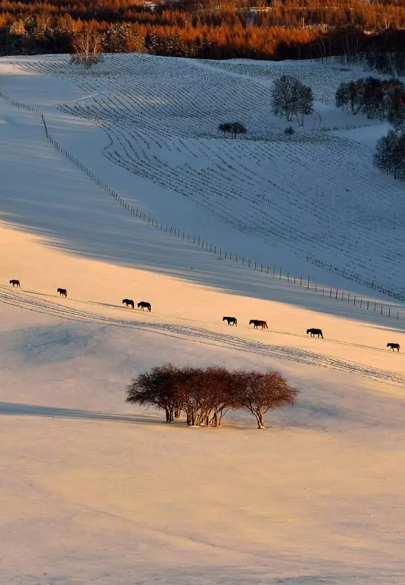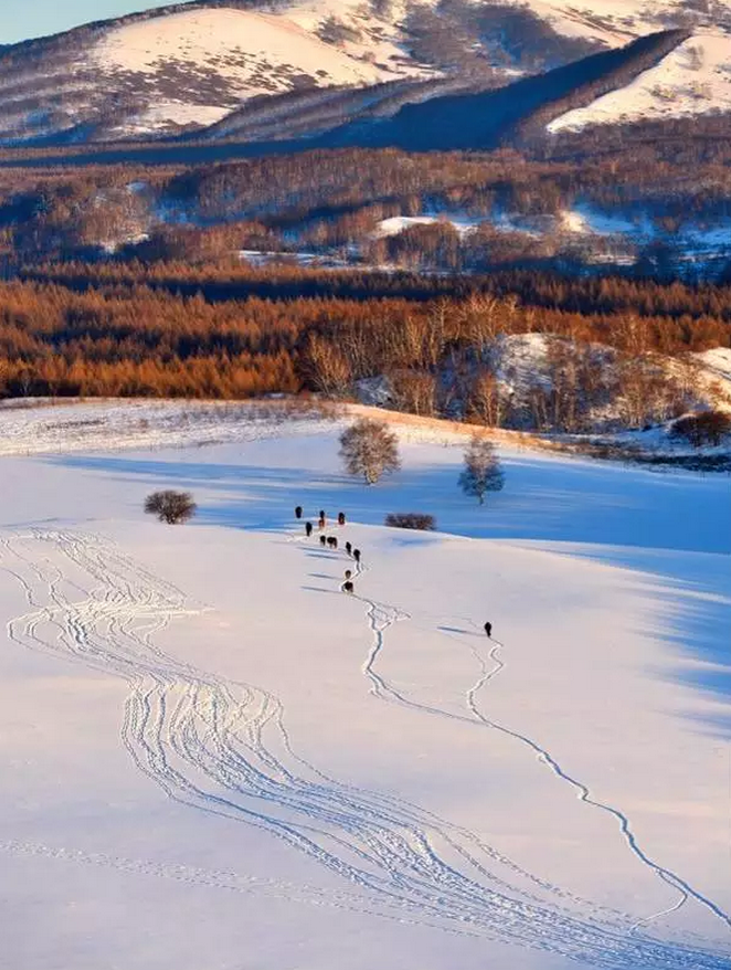 ▼好似一幅巨大的油画,以不同的色彩,丰厚的内涵,诠释雪原难以诉诸文字的深刻内涵。