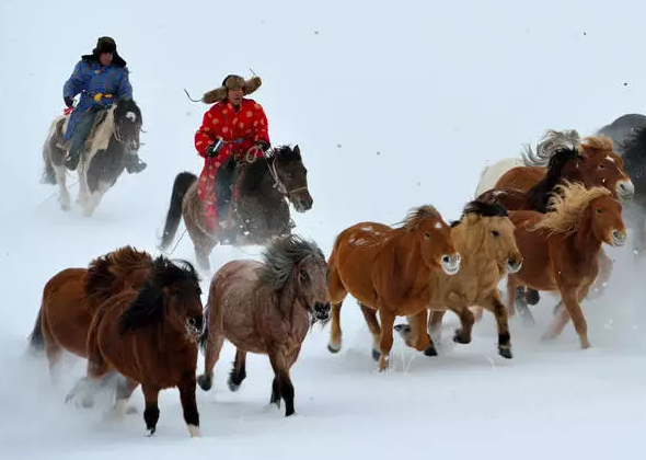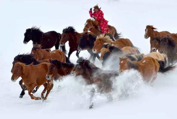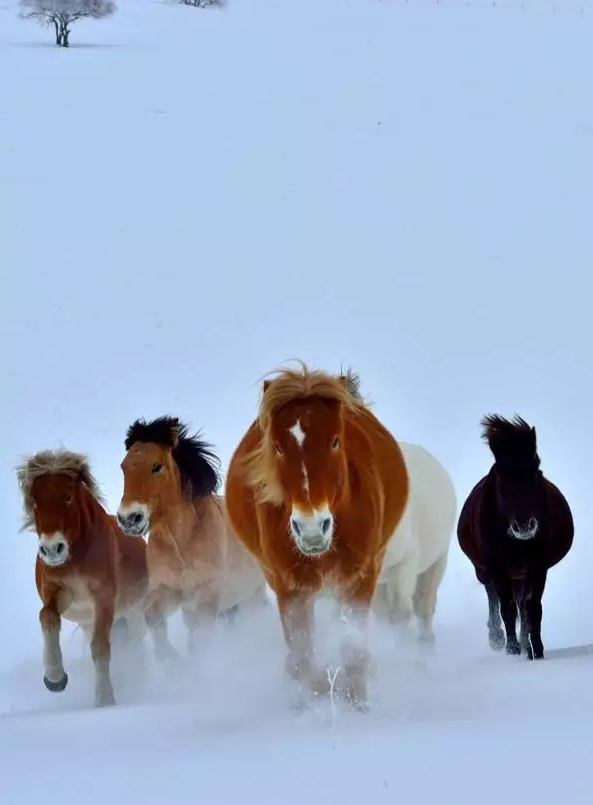 ▼骏马飞奔在雪原上,越发洞见雪原的雄浑和粗狂。