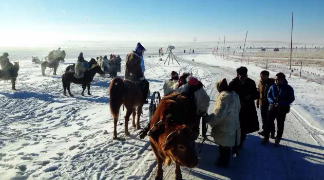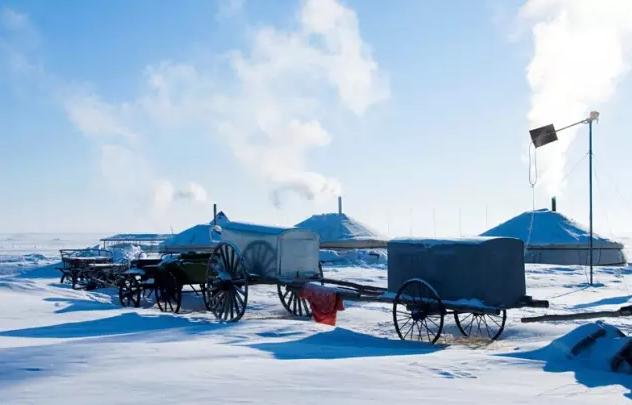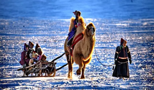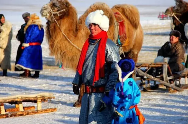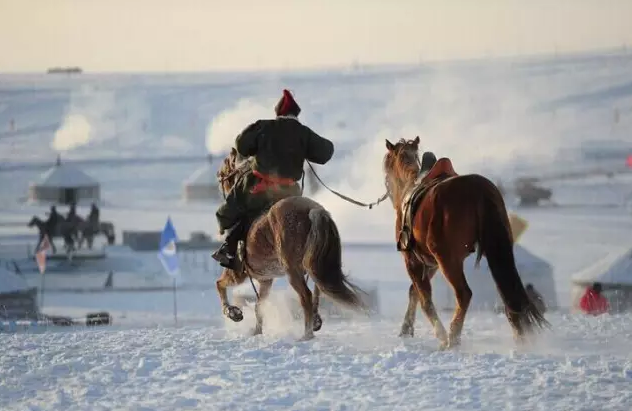 在冰天雪地里,蒙古族人将进行民族传统项目:赛马、摔跤、射箭、赛马爬犁、骆驼爬犁等比赛…