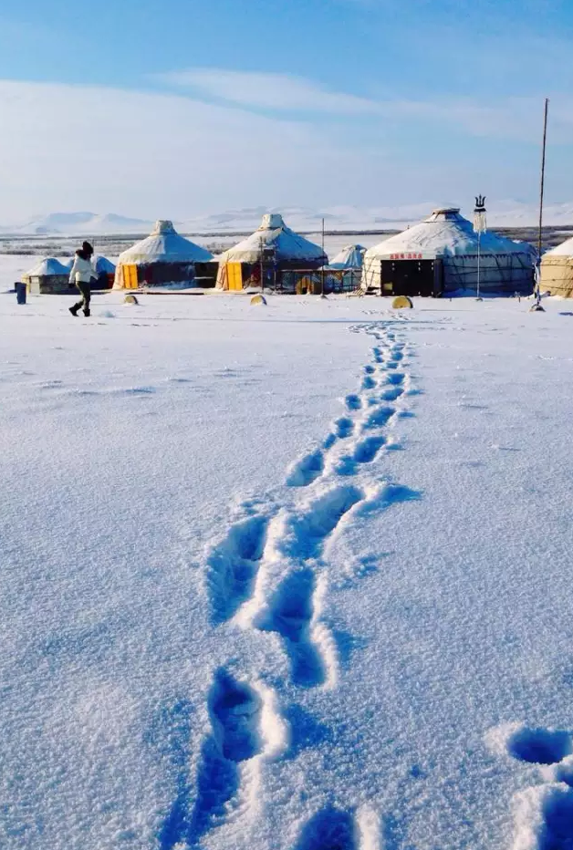踩着厚厚的积雪,脚下发出咯吱咯吱的声响,还有雪花不时的飘在脸上…这里人烟稀少,我们每走一步都可以清晰的留下自己的足迹,所有的一切都是你的……
