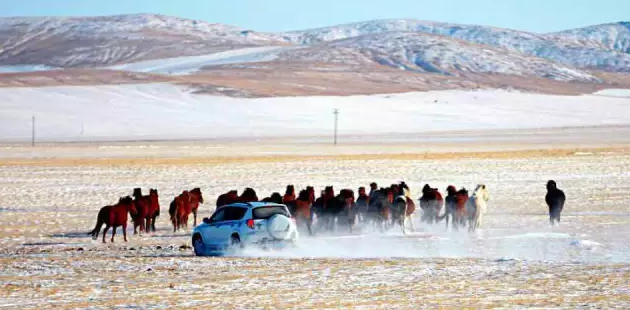 内蒙古到了冬季节就整个成了大雪原,这时乘越野车穿越雪原,你不妨大声尖叫,尽情释放隐藏心中已久的压抑.....