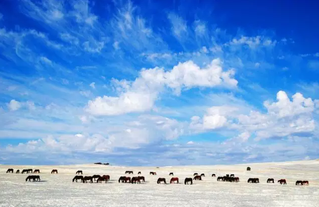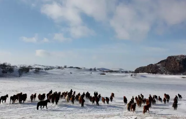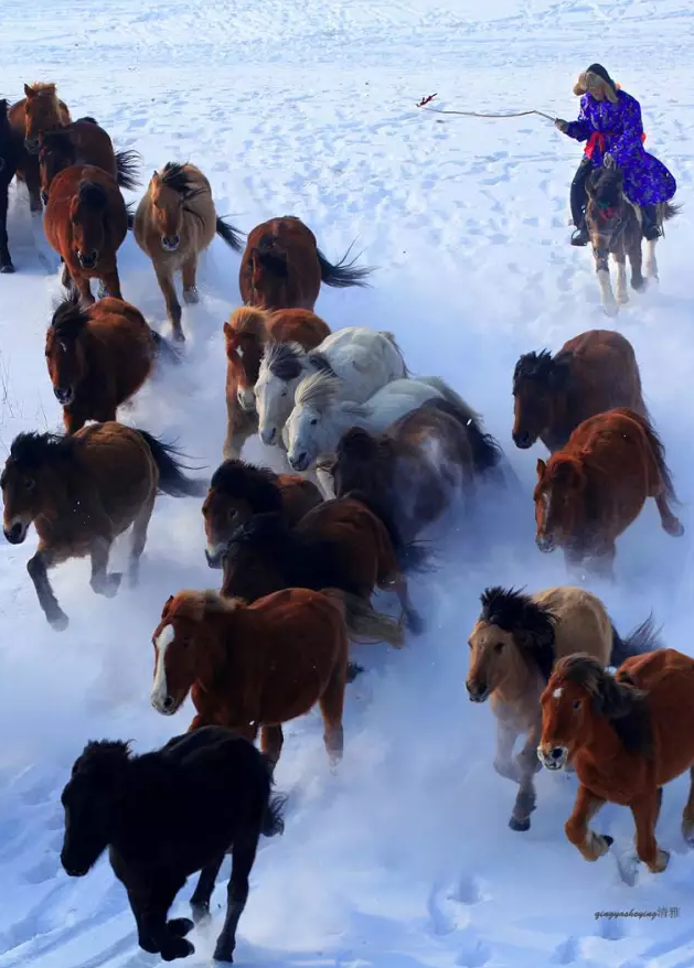 一碧千里的冬季草原风光,悠扬的马头琴声,喷香的奶茶,质朴高亢的蒙古民歌,热情好客的蒙古族同胞... 骏马在奔驰,牧民在歌唱,那草原上的白雪、牛羊、骏马、牧人,构成了一幅极美的图画。