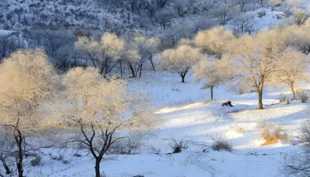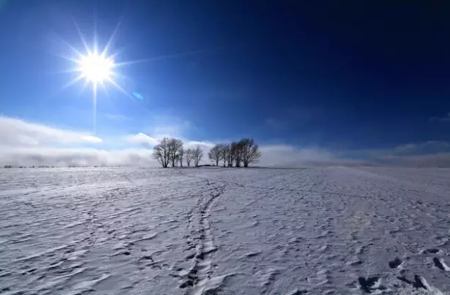 早晨,当你轻轻推开房门时,白雪已刷新了草原的每个角落。错落有致,凸凹不平的小山坡,穿上了洁白的衣裳,在早晨青冷阳光的照耀下,别有一番韵致。极目远望:阳光白雪布满天地,充盈大地万物,分不清那儿是地,那儿是天。洁白的衣裳奕奕发光,如锦段,漂亮极了!
