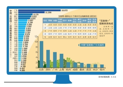 2016中国“互联网+”峰会在京召开,会上揭晓了中国“互联网+”建设十大标杆城市榜单。北京、深圳、广州和上海四个一线城市占据了榜单前四席位,杭州、成都、重庆、武汉、长沙和福州紧随其后。