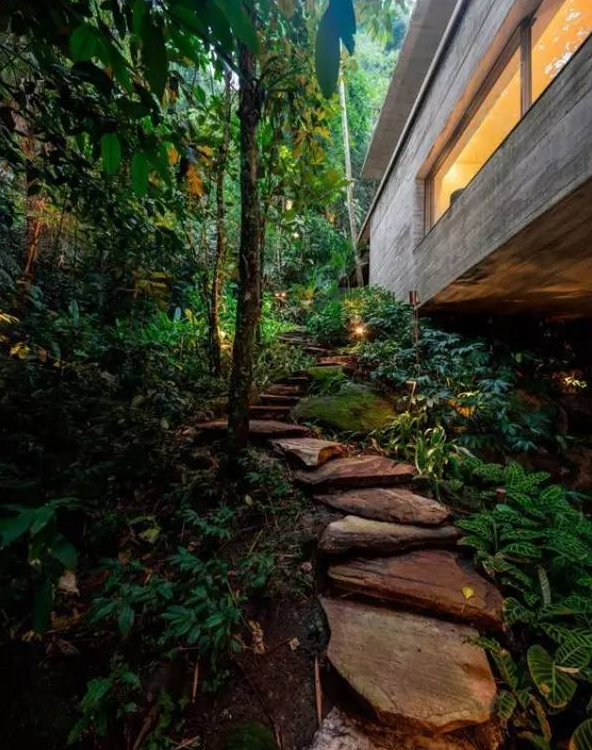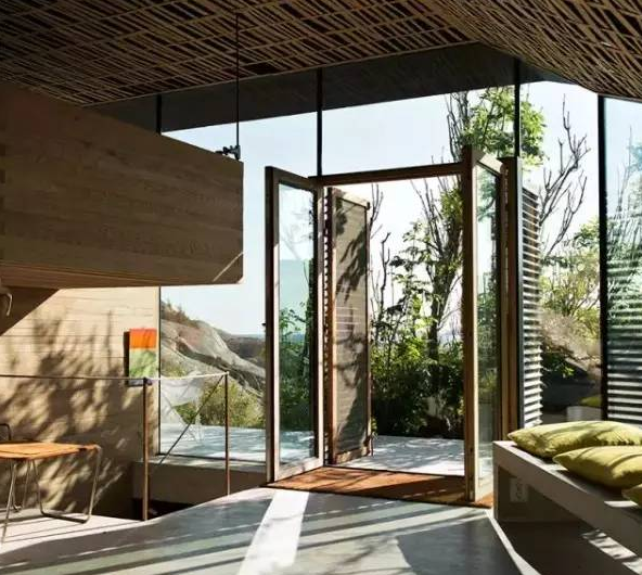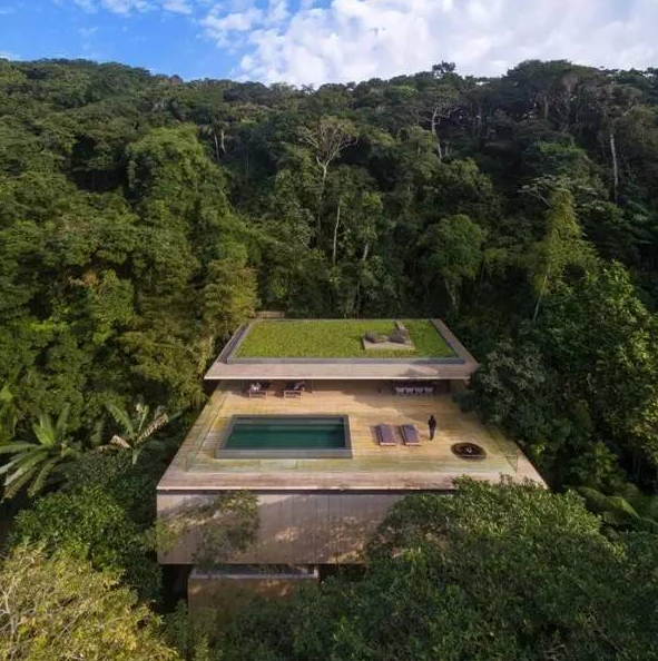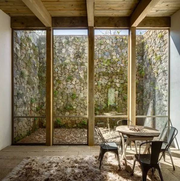在墨西哥景区Valle de Bravo里,CC Arquitectos使用风化后的石头、天然木材和大片玻璃创造了这处森林住宅。卧室和起居室之间组成了一个花园区,这里有水池和浴池,被安装在灌木丛中。