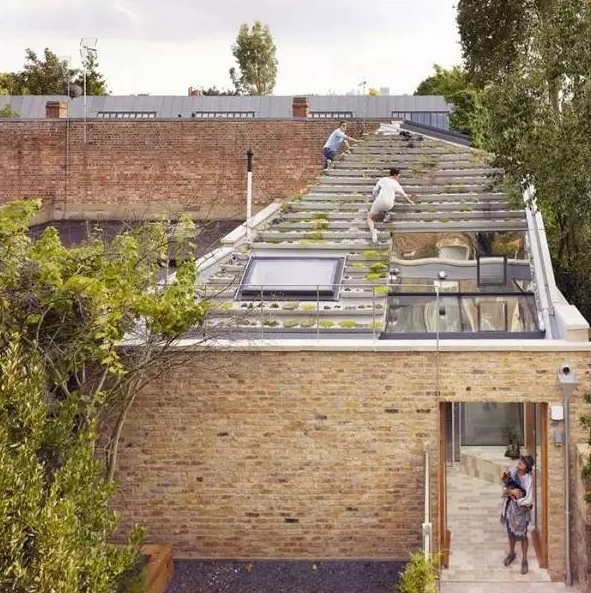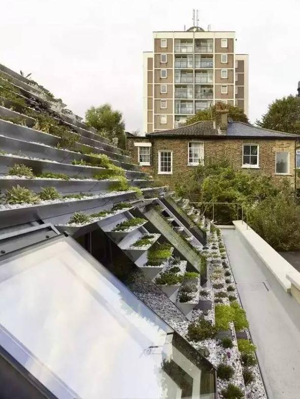 这座住宅位于伦敦哈克尼区,四周多是维多利亚时期风格的建筑。屋顶坡度在30°~45°之间,方便主人爬上爬下,更好地打理这座屋顶上的花园。整个屋顶上覆盖了800多株植物,简直就是一座植物博物馆。