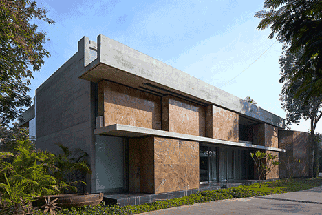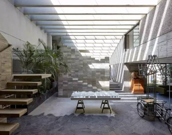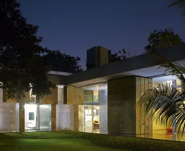 这是位于印度西北部一城市郊区的一栋住宅,一个走廊与外墙组成的空间混合体。只要你按一下室内的按钮,首层的4块大理石便会相互移动。