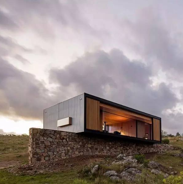 这座面积115平方米的住宅,在乌拉圭首都附近的一个工厂预先制作,然后货车经过200公里运输,到达群山包围的橄榄树林,风景美如画。