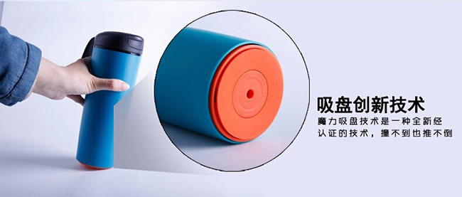 这款号称推不倒的创意水杯,最大的特点就是杯底魔力吸附接触面,起到稳定牢固不倒的作用,避免杯子因外界因素(他人,无意识的,打闹时)被碰倒弄湿桌面及其文件、设备,甚至倒地晒出开水烫伤人。无论您从各个方向想碰到它,都不是一件容易的事,你只能垂直拿起它,所以有人说“众杯皆倒,唯它不倒”,充分将对用户的关怀做到极致。