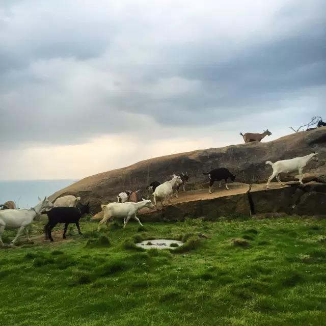 还记得施工的时候,老乡养的羊和鸡成群结队地跑到这块大石头上,我就和它们一起,坐在这块大石头上看海。