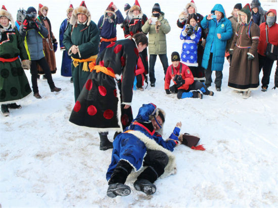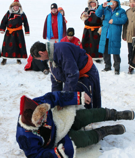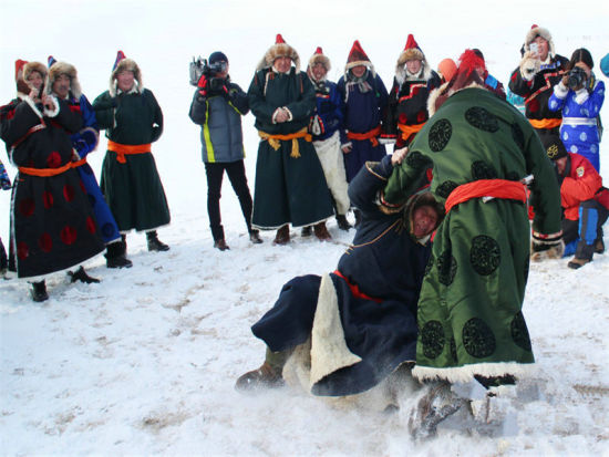 蒙古族雪地“摔跤”竞技表演