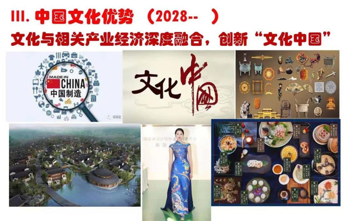 这个新的增长点便是中国文化。因为当经济发展到了一定阶段文化就有了一定的吸引力和诱惑力。而且经济能够创造新文化,是新文化的策源地。比如外出旅游时买的日本家电、德国刀具等,买的就是本土文化,是工业经济形成的新文化,可见一个国家的品牌产品就代表着这个国家的文化,中国未来的高端制造就是中国文化品牌,比如中国高铁。所以,文化要与相关产业经济深度融合,利用先进的工业制造、服务创造出特色的文化影响力,创新“文化中国”,塑造中国现代文化经济品牌。