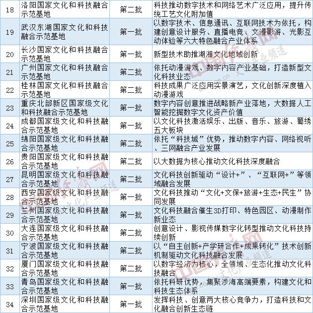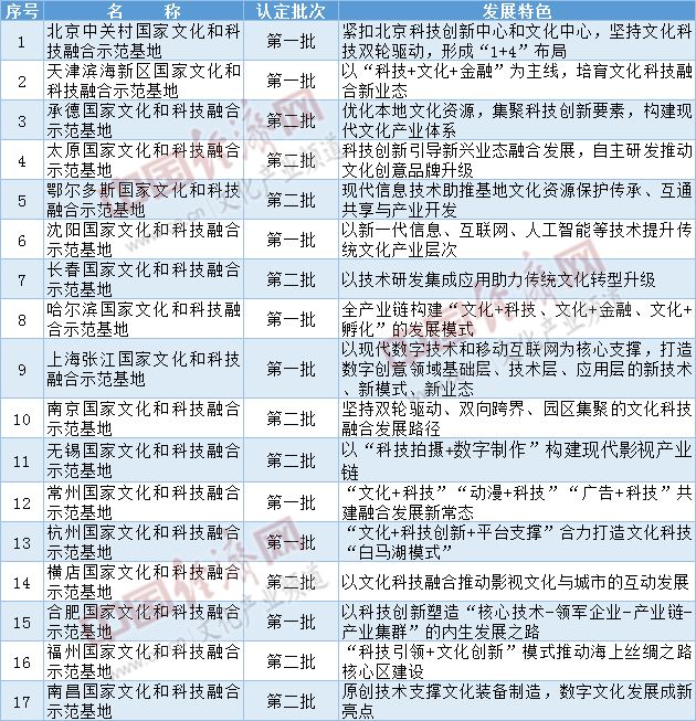 附:前两批34家国家文化和科技融合示范基地名单及发展特色