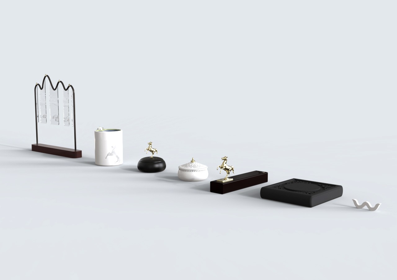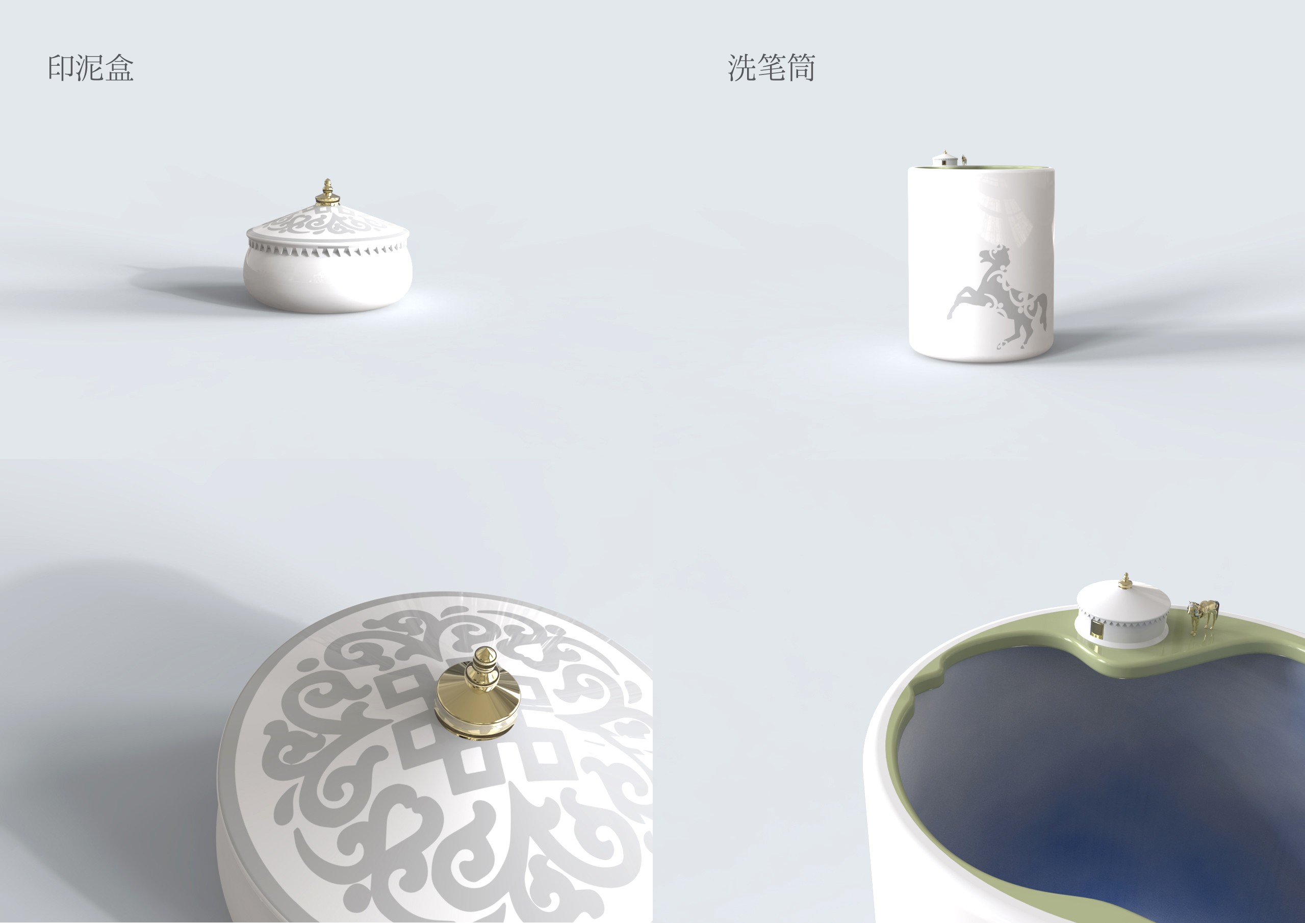 设计理念:时代的车轮滚滚向前,快节奏的生活节奏下,人们对精神生活的追求日益高涨。本系列书房用品尝试从鄂尔多斯地域文化中寻求灵感,把蒙古包、蒙古马、鄂尔多斯传统纹样等元素与文房四宝系列产品巧妙融合,以期营造鄂尔多斯辽阔安逸的意境氛围。既具备观赏性,又不失功能性和实用性;既适用于日常生活中怡然笔走龙蛇,又是一件不失体面的送人佳品。
